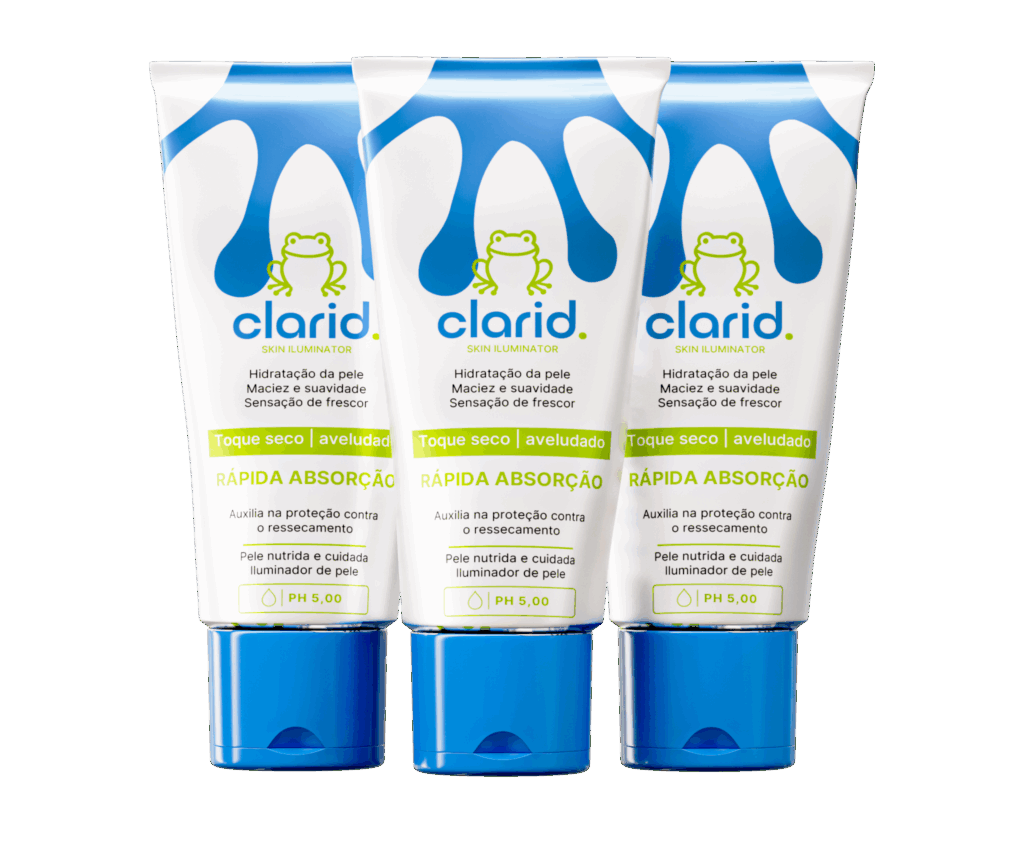 Pode — e deve. O Clarid tem textura leve e rápida absorção, funcionando como um primer hidratante. Ele deixa a pele com toque seco, uniforme e facilita a aplicação da maquiagem, prolongando a duração e evitando o ressecamento.